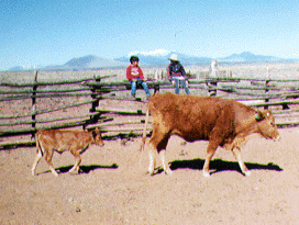Two buckaroos, with the San Fransisco Peaks in the background, waiting to work the cows